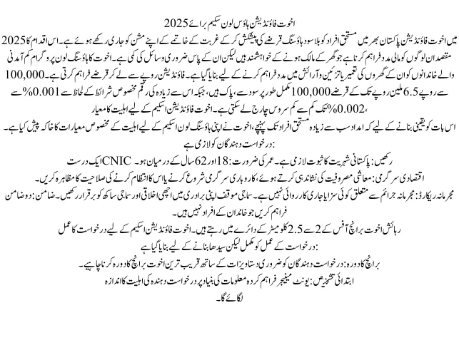 Akhuwat Foundation House Loan Scheme 2025 – Main Details