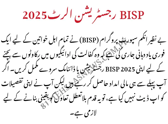 For any questions, contact the BISP helpline at 0800-26477 or check your status via the 8171 SMS service. Stay informed, act now, and help others in your community complete their BISP 2025 Registration too!
