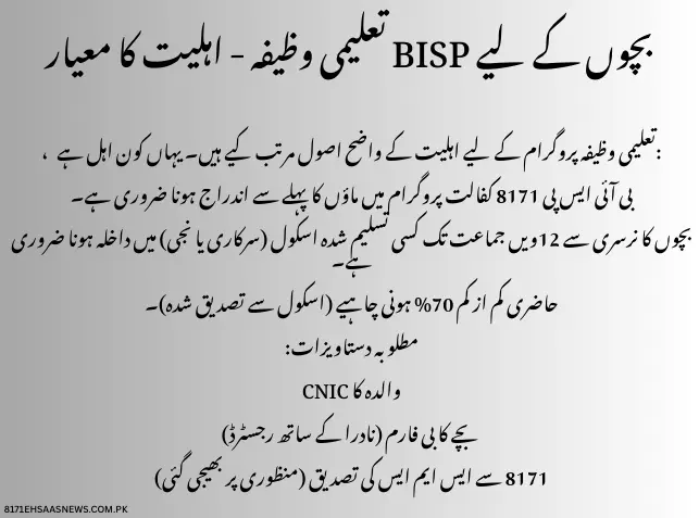 🔍 To ensure transparency, BISP 8171 has set clear eligibility rules for the educational stipend program. Here’s who qualifies: