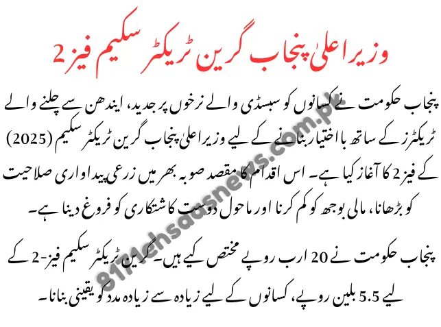 The Punjab government has launched Phase-2 of the CM Punjab Green Tractor Scheme (2025) to empower farmers with modern, fuel-efficient tractors at subsidized rates. This initiative aims to boost agricultural productivity, reduce financial burdens, and promote eco-friendly farming across the province.