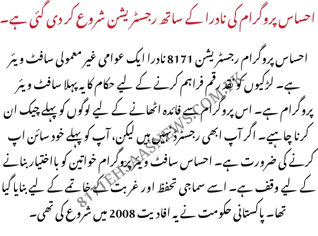 Ehsaas software program has started out out re-registration, which has delivered about 9 million households and the quantity of help has prolonged via using 60%. Now greater people can be succesful to advantage from this software. This software targets to supply treatment to all of the bad families of Pakistan with the intention to clear up their problems effortlessly. To be registered in the ahsas.Nadra.Gov.Pak software, you have to visit the Nadra Office first. Because All the statistics in 8171 nadra software registration goes to ehsaas nadra.Gov.Pk.